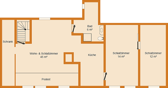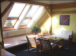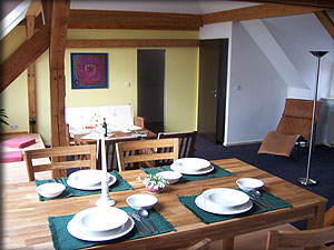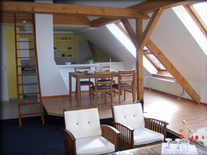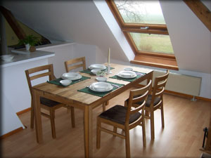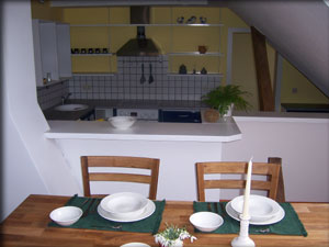 Wohnung für 4 PersonenDie Wohnung wurde für 2 Erwachsene und 2 Kinder eingerichtet. Durch ein zusätzl. Hochbett "Schwalbennest" im Wohnbereich bietet sie aber bis zu 6 Personen Platz. Zur Wohnung gehört:Ein großer Wohnbereich mit Sitzgruppe, Fernseher und begehbarem Schrank. Zwei Schlafzimmer, 1x mit Doppelbett und 1x mit zwei Einzelbetten. Eine offene Küche mit Kühlschrank, Herd, Spülmaschine, Kaffeemaschine und Toaster. Ein Bad mit Dusche und WC. Hinweise: |